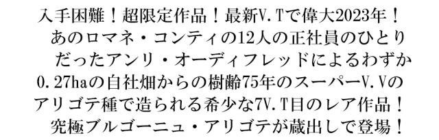 入手困難!超限定作品!最新V.Tで偉大2023年! あのロマネ・コンティの12人の正社員のひとり だったアンリ・オーディフレッドによるわずか 0.27haの自社畑からの樹齢75年のスーパーV.Vの アリゴテ種で造られる希少な7V.T目のレア作品! 究極ブルゴーニュ・アリゴテが蔵出しで登場!