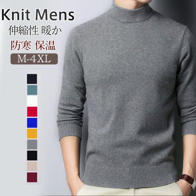 ニット メンズ セーター 長袖 ニットセーター タートルネック インナー 秋冬 防寒 暖かい プルオーバー 重ね着 着痩せ スリム