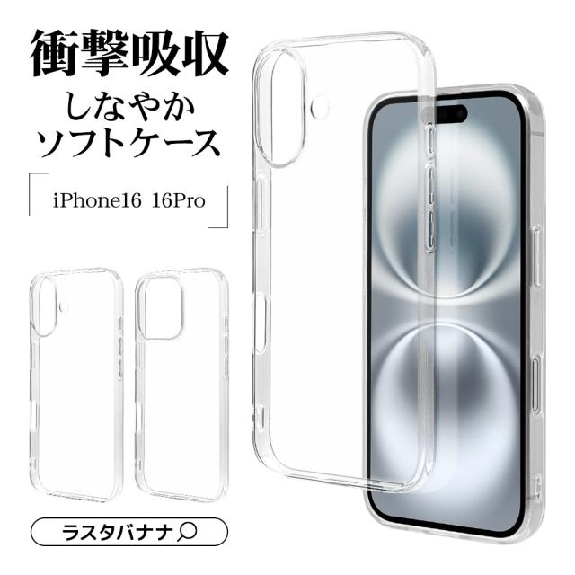 【送料無料】iPhone16 16 Pro ケース カバー ソフトケース TPU 耐衝撃吸収 クリア 透明 1.3mm ストラップホール ワイヤレス充電対応 アイフォン ラスタバナナ 8107IP461TPCL 8202IP461PTPCL