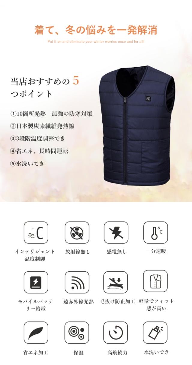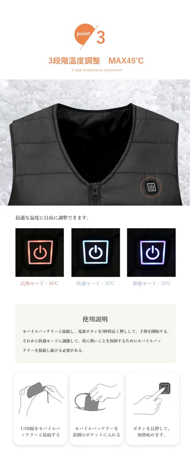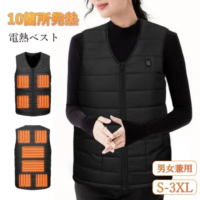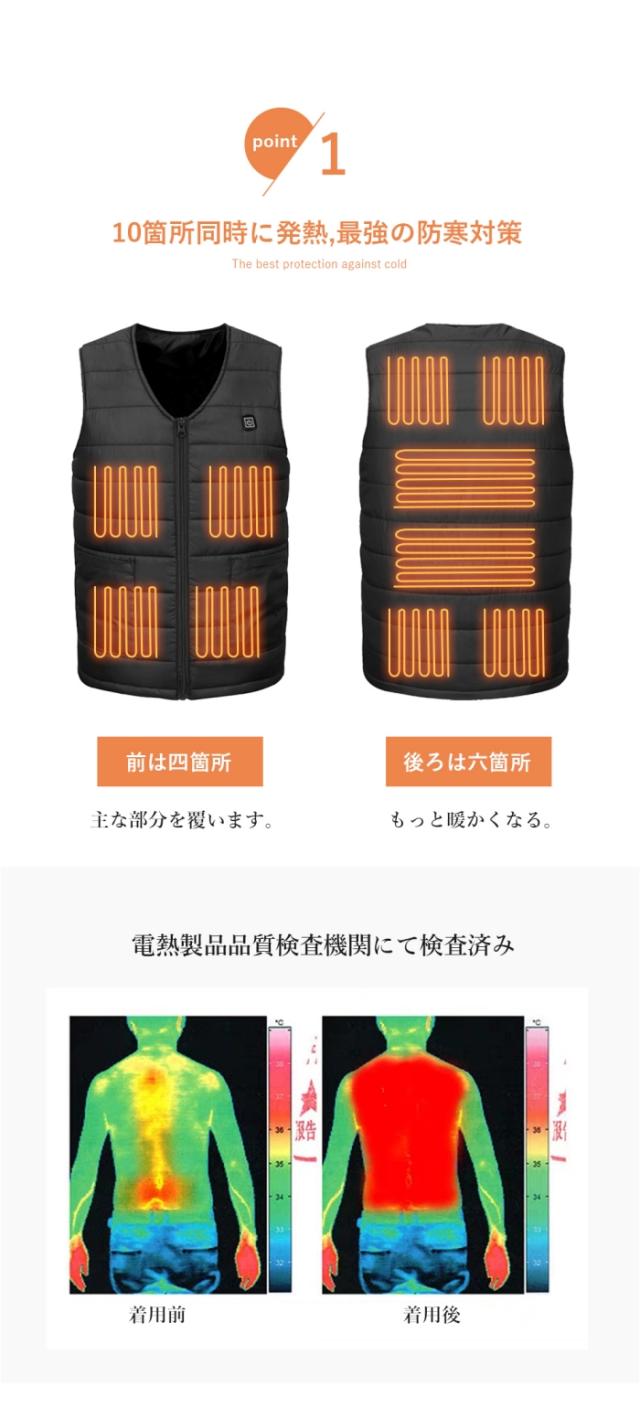 【新品登場M-7XL】電熱ベスト 電気ベスト ヒーターベスト 加熱ベスト usb ヒートジャケット ブラック ベスト ワーク 作業着 大きいサイズ 防寒ウエアusb 電熱ベスト 10箇所発熱 電熱ジャケット 5V/2A 10枚内蔵 3段温度調整 大きい 防寒チョッキジャケット USB給電