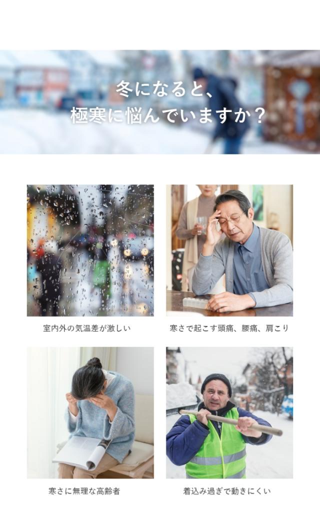 4.ヒーターをお腹、背中、腰、肩の9か所に配置し、素早くベスト内を温めます。