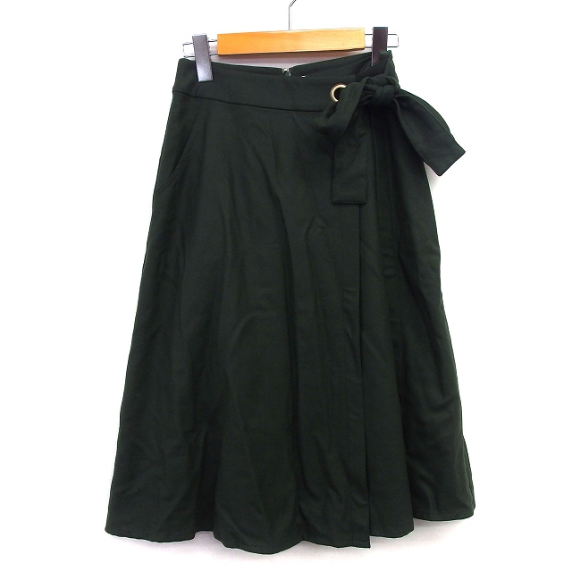 【中古】エフデ ef-de フレア スカート ロング シンプル ラップ風 ウエストリボン ウール 毛 9 モスグリーン 緑 /HT28