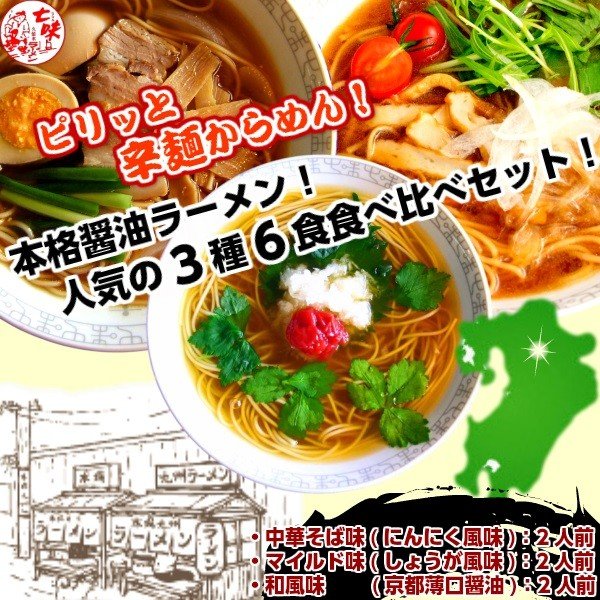 ラーメン お取り寄せ 中華そば味 マイルド味 和風味 3種6人前 ピリッと辛麺 セット 一味唐辛子 特製中華麺 通販 グルメ ギフト