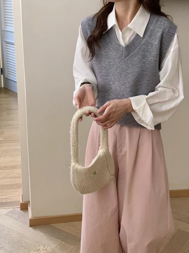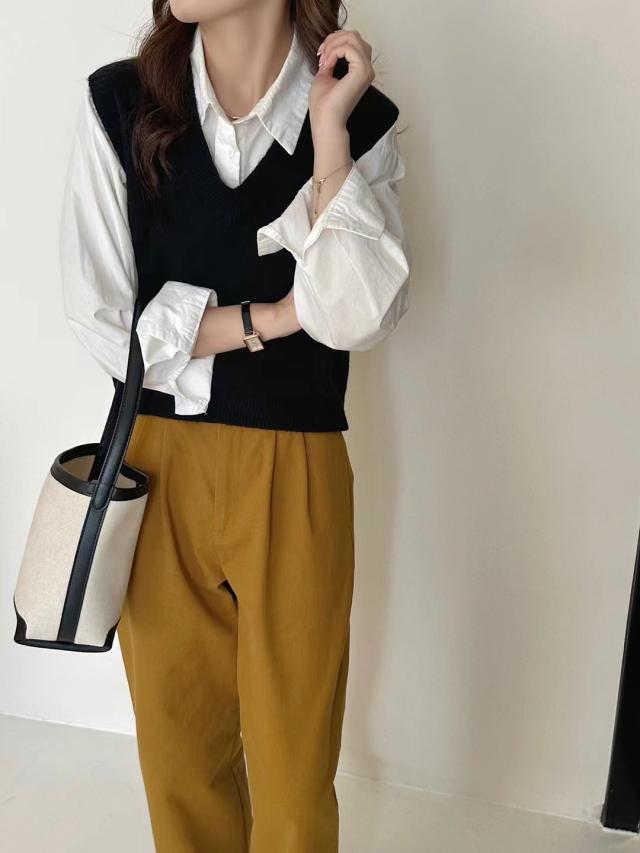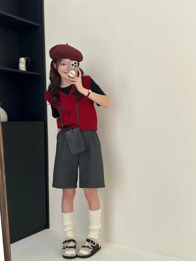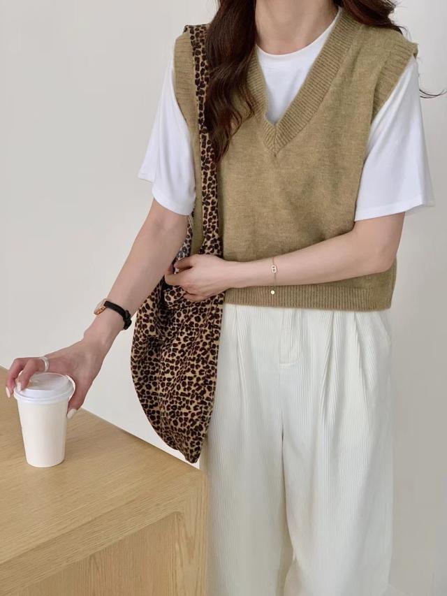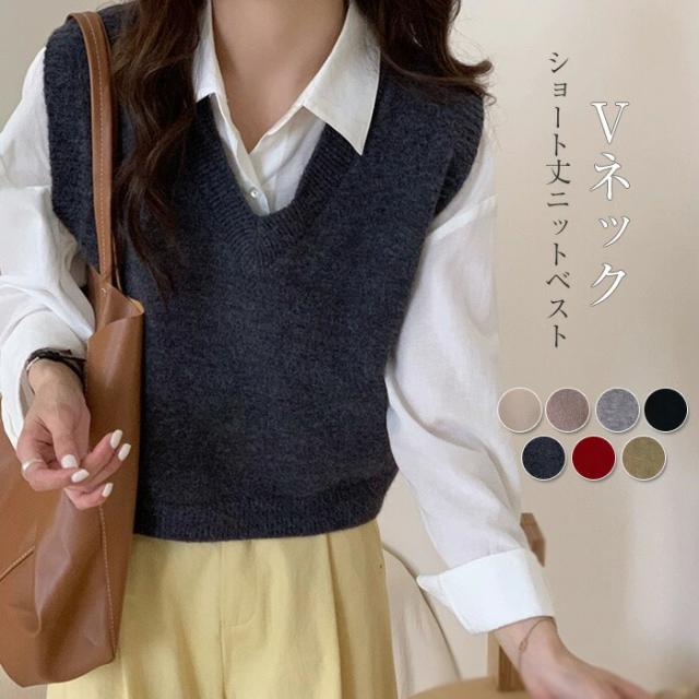 秋冬 Vネック ショート丈 重ね着トップス プルオーバー ノースリーブ 軽い 柔らかいレディースファッション トップス ベスト ジレ