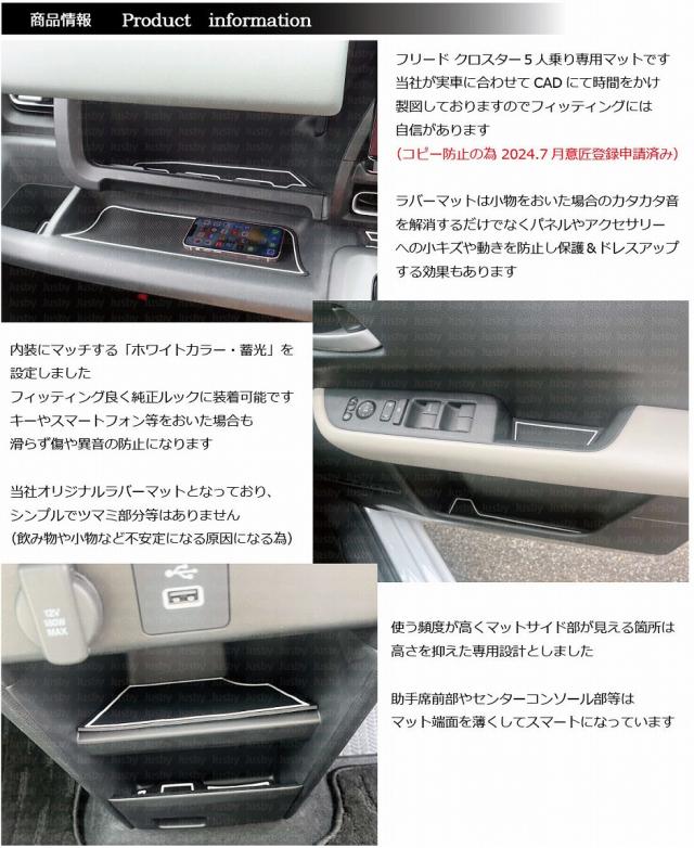 新型フリード CROSSTAR 5人乗り用 インテリアラバーマット (ホワイト/蓄光) ドアポケット ゴムマット FREED GT2,4,6,8 クロスター アクセサリー パーツ ホンダ