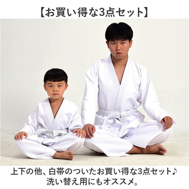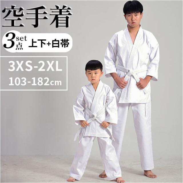 空手着 上下 帯セット 通販 空手 道着 空手衣 胴衣 白帯 3点セット 上着 上衣 パンツ 子供 大人 軽量 速乾 耐久性 混紡生地 サイドスリット 動きやすい 練習着 合気道 武道 学校