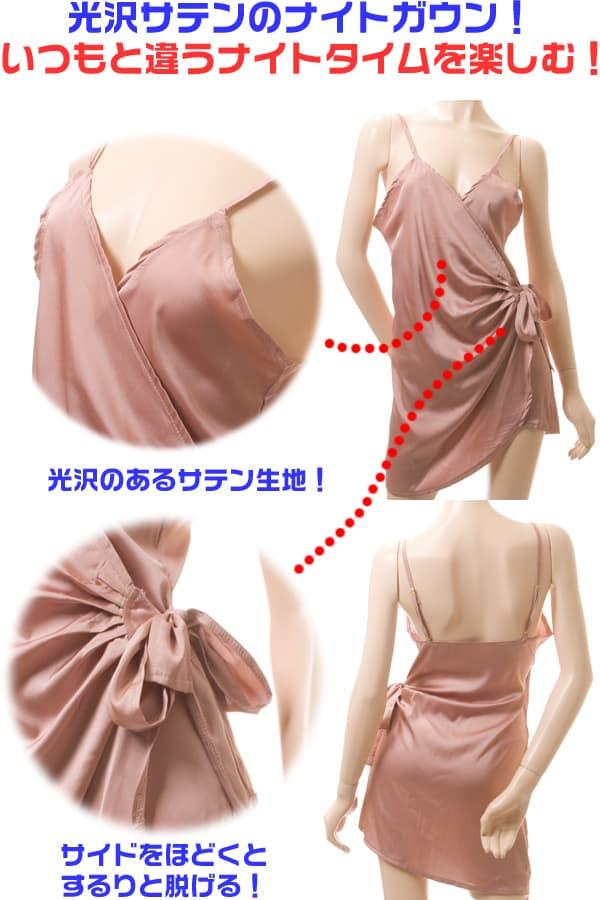光沢 サテン ナイト ガウン ルーム ウェア ネグリジェ ドレス パジャマ 部屋着 セクシー ランジェリー 下着 女性 レディース 勝負 過激 グッズ おもちゃ エロ かわ エッチ エロい エッチな sexy