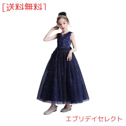 [Kayiyasu] 子供ドレス ピアノ 発表会 女の子 フォーマル ロングドレス 結婚式 卒業式 パーティー 刺繍 入園式 120-170 3−13歳