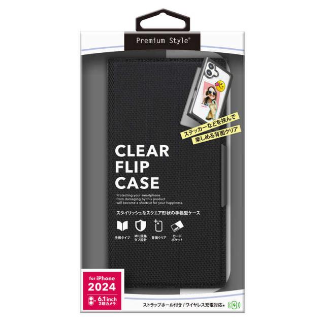 PGA iPhone 16(6.1インチ)クリアフリップケース Premium Style ナイロン/ブラック PG-24ACF04BK