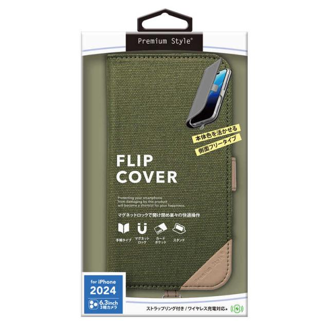 PGA iPhone 16 Pro(6.3インチ) フリップカバー Premium Style キャンバス/カーキー PG-24BFP12GR