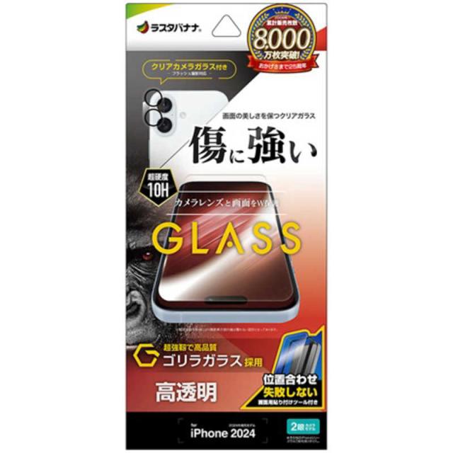 ラスタバナナ iPhone 16(6.1インチ)ガラスフィルム ゴリラガラス 高光沢+ カメラレンズ保護ゴリラガラス 簡単貼り付け治具付き GCS4339IP461
