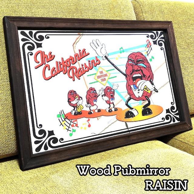鏡 パブミラー レーズン RAISIN アメリカン 雑貨 インテリア ウッド 壁掛け 木製 レトロ かわいい キャラクター アンティーク