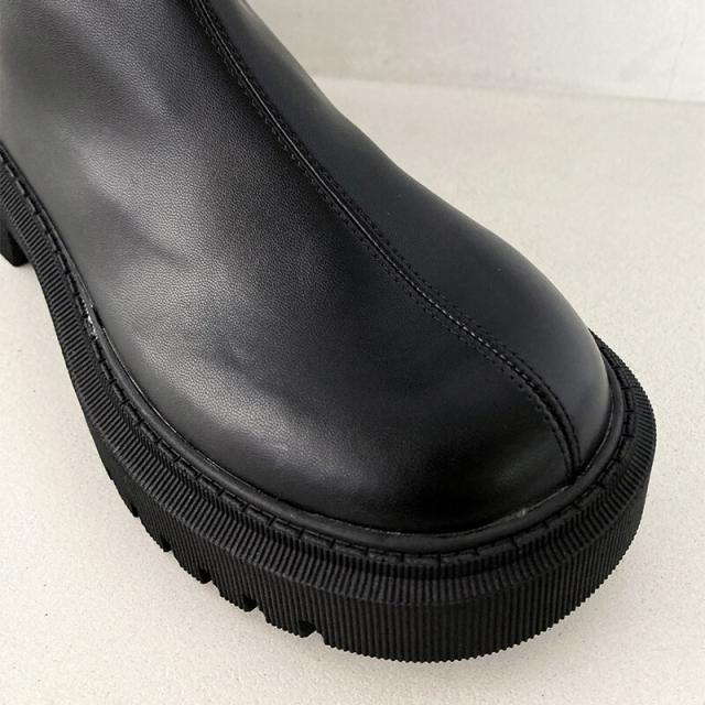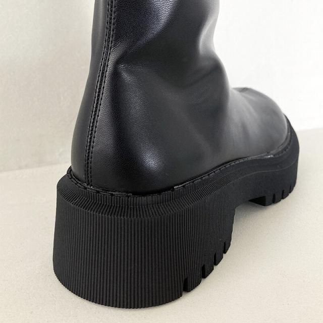 シンプルながらもボリュームのある厚底タンクソールがポイントのロングブーツ。