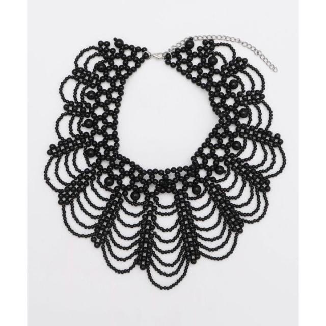 レース風のビーズがレトロなネックレス。つけ襟のように首元を華やかに彩ります。ワンピースなどに合わせてお使いいただくと、いつものファッションも一味違った印象に。