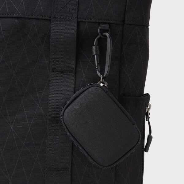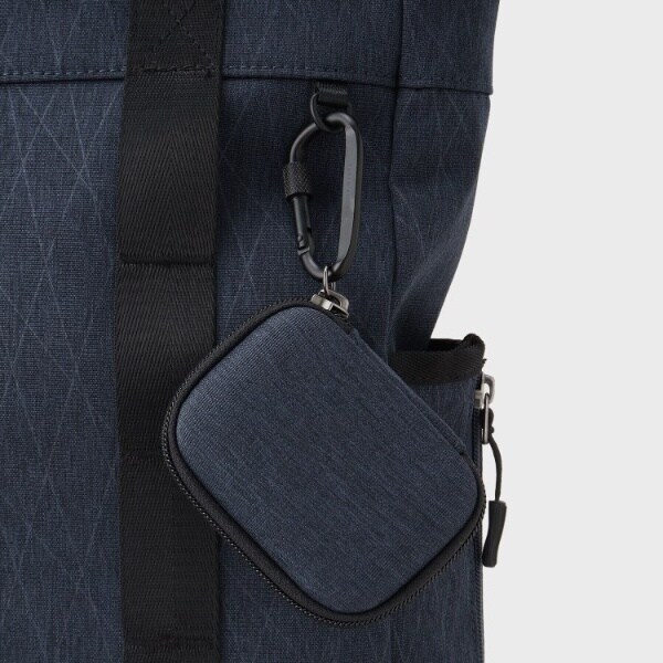 ・Bluetoothイヤフォンや、小銭などが収まるカラビナ付きのマルチケースを装備していて、すぐに取り出したいものを収納するのに便利。