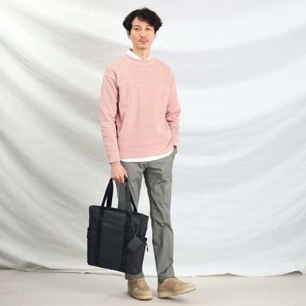 全体を柔らかなイメージにすることで、お仕事にも休日のスタイルにも合わせやすく、コーディネートの汎用性が広がるトートバッグです。