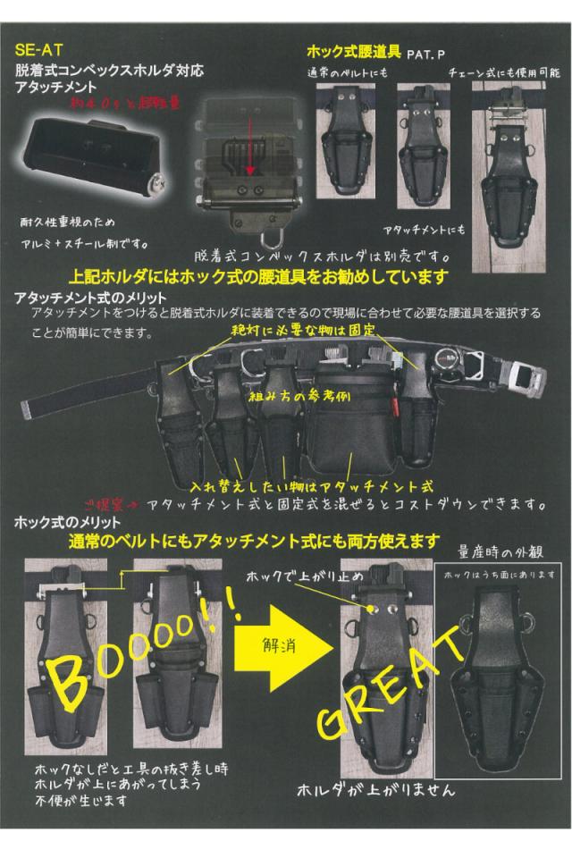 注意事項:800g以上の吊り下げ物はしないでくださいマスターツール SE-AT 脱着式コンベックスホルダ用アタッチメント ブラック ◇