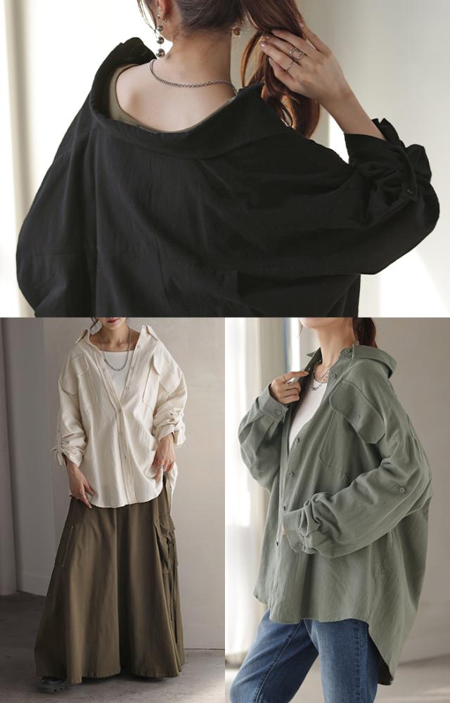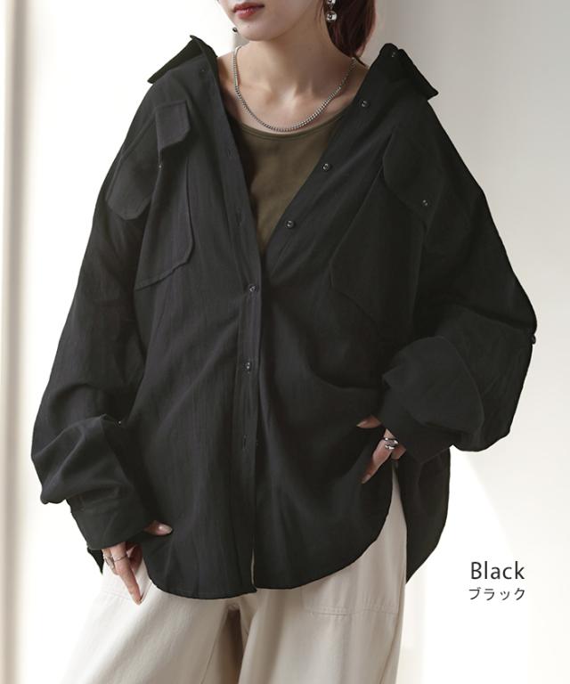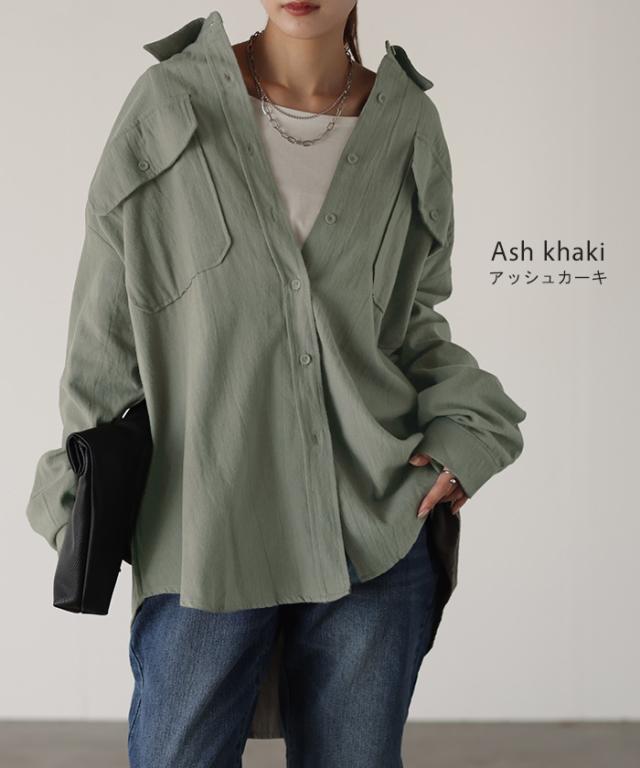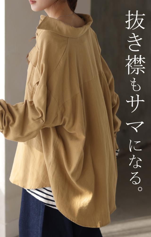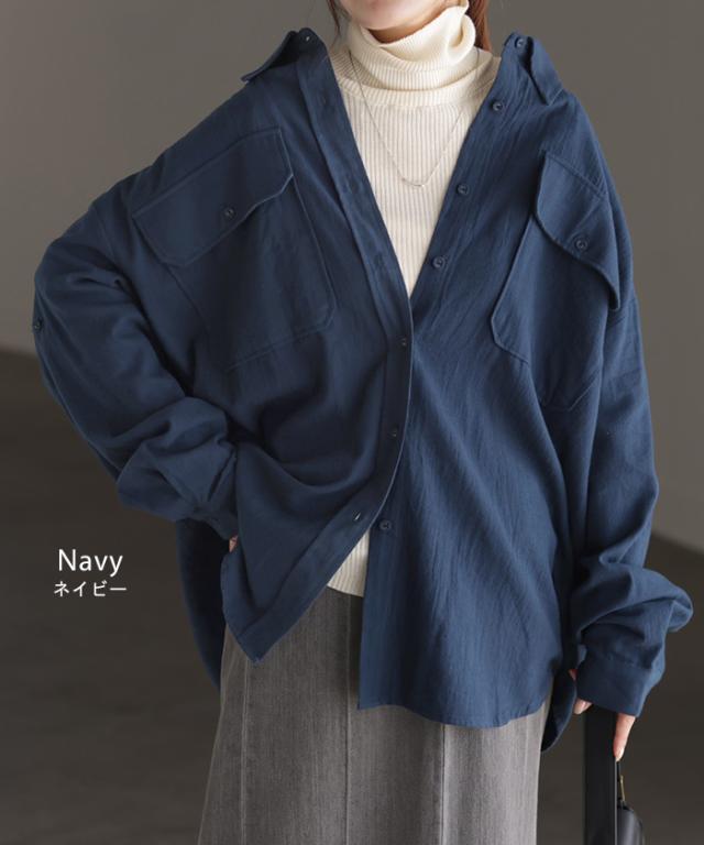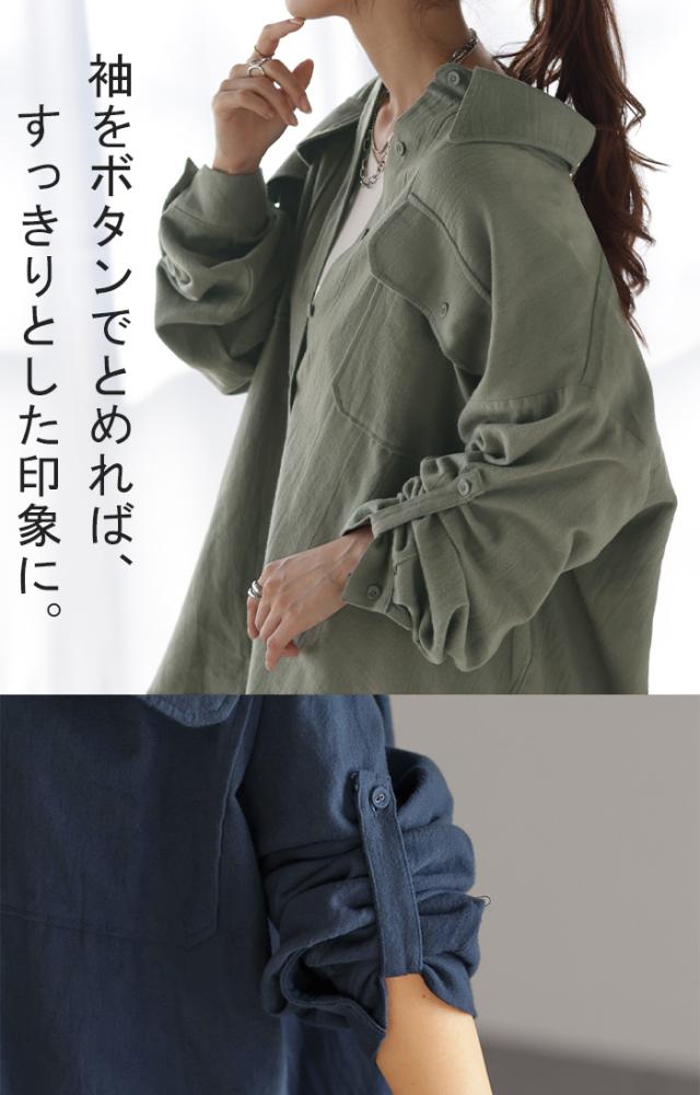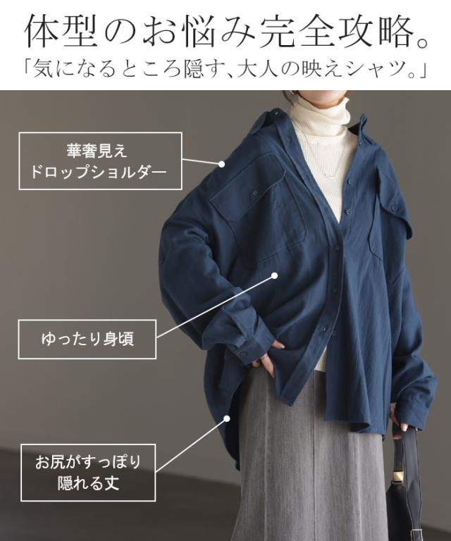 【冬SALE】 シャツ 微 起毛 綿100% ロング レディース トップス ブラウス 羽織 レイヤード 裏起毛 重ね着 ドロップショルダー お尻が隠れる 無地 長袖 襟 Vネック 大きいサイズ 体型カバー チュニック ドルマン 抜き襟 きれいめ 暖かい ネイビー 黒 秋 冬 HUG.U 秋新作