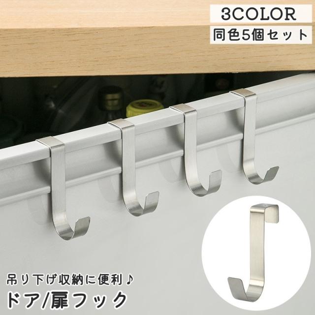 ドアフック 同色5個セット 扉フック ドアハンガー 引き出し キャビネット フック 日用品雑貨 整理用品 収納用品 小物掛け 吊