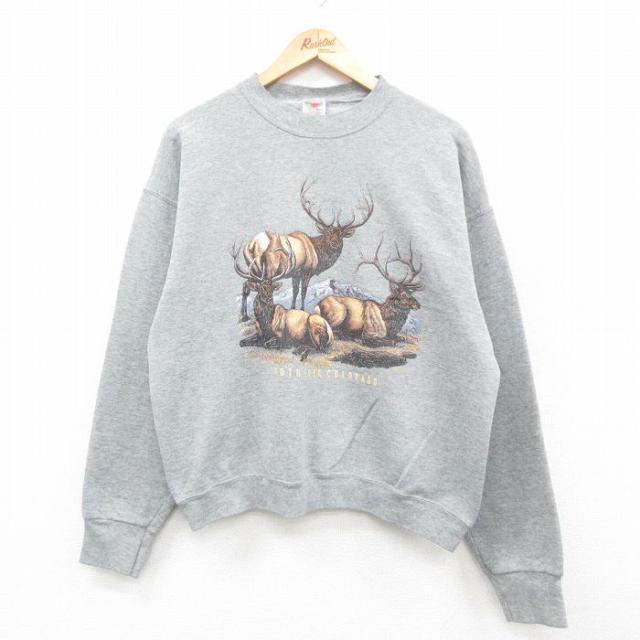 【商品名】 L★古着 フルーツオブザルーム 長袖 スウェット メンズ 00年代 00s シカ コロラド クルーネック グレー 霜降り