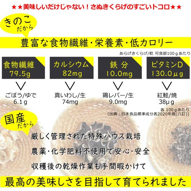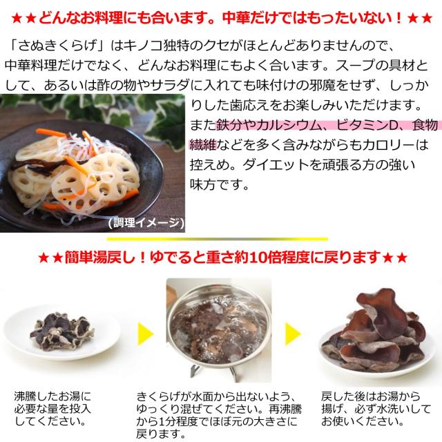 | ■商品内容: | さぬきくらげ (冊) 500g |
