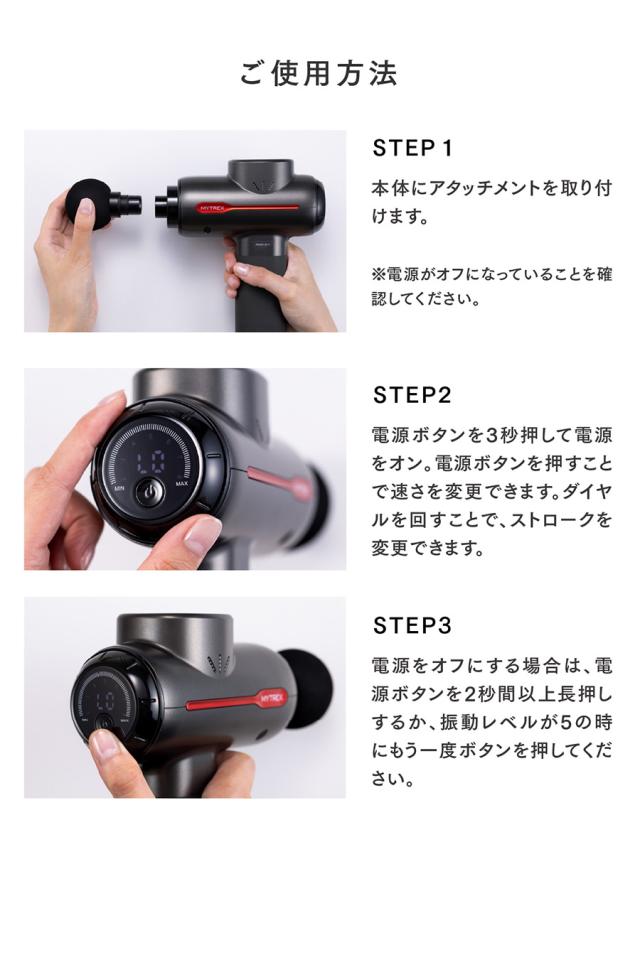 業界初(※)の手圧変動テクノロジー搭載ハンディガン マイトレックス 体のどこでも使える 健康 筋肉 家電 グッズ 静音設計 マッサージャー ※自社調べ