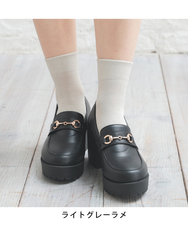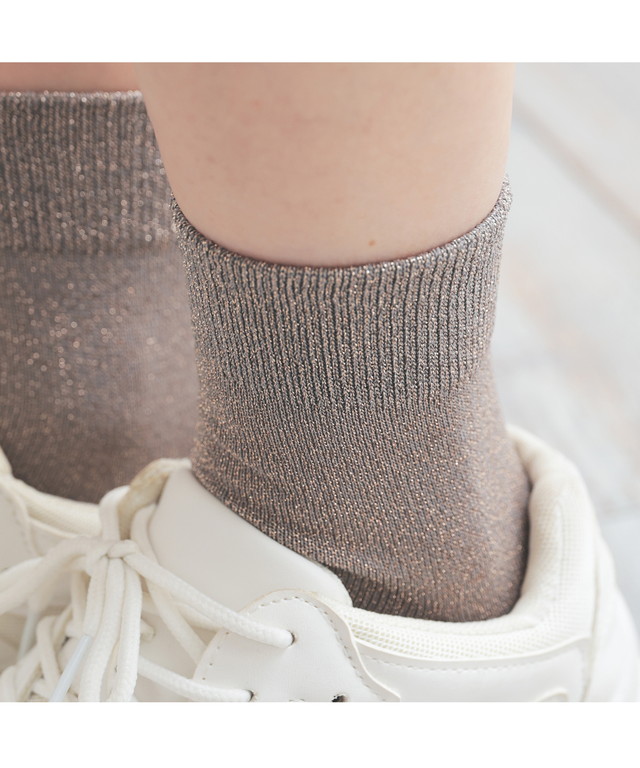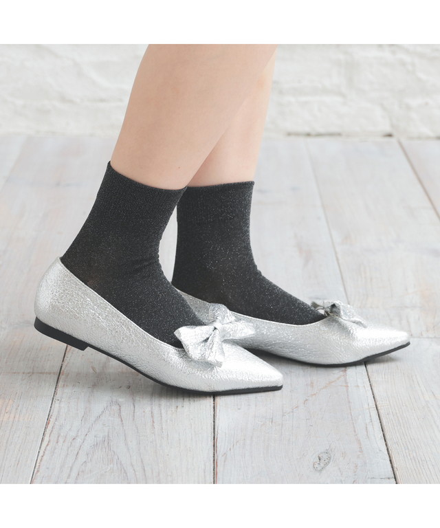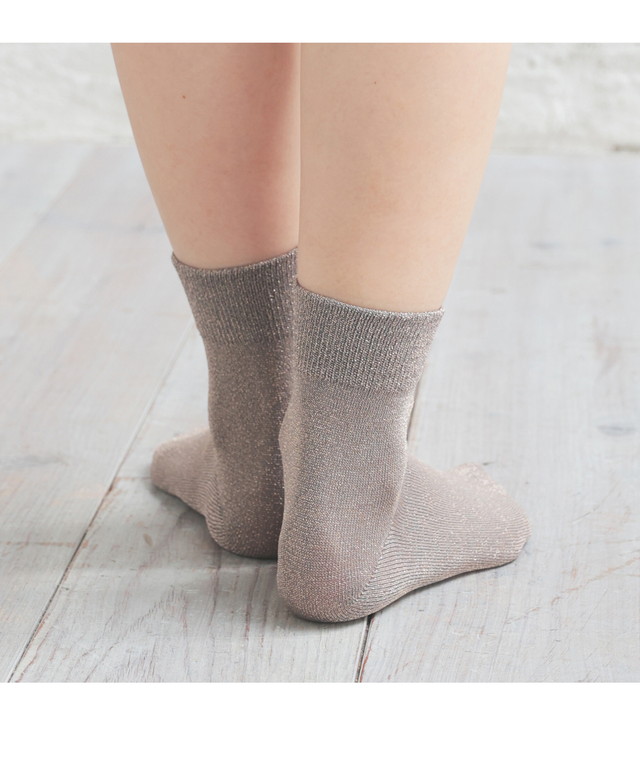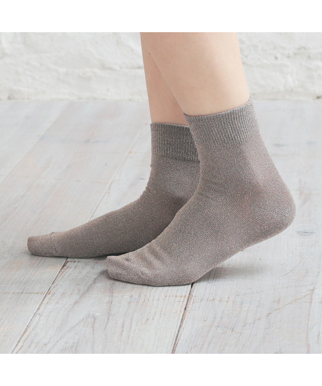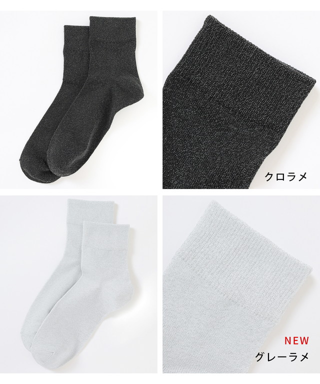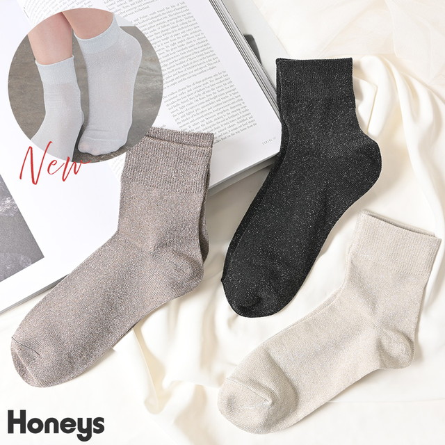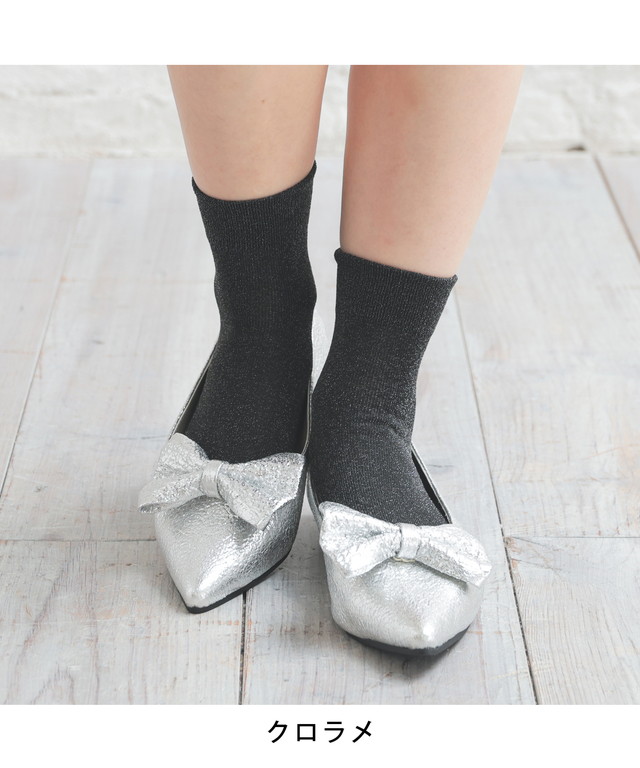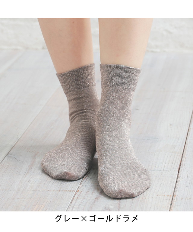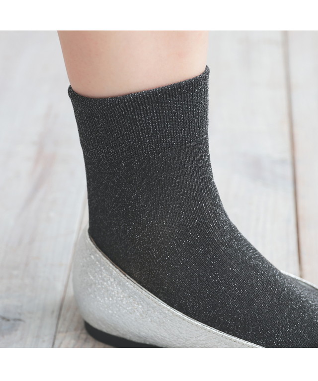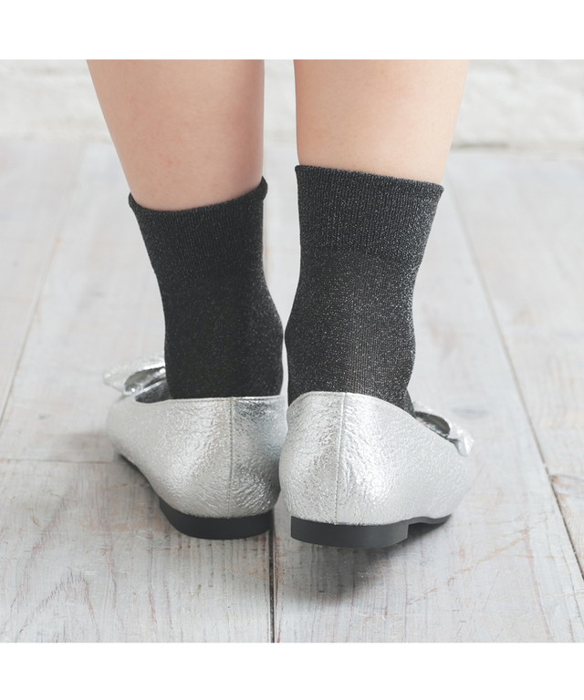 靴下 ショート丈 ラメ入り オールシーズン 黒 グレー ソックス レディース Honeys ハニーズ ラメショートソックス