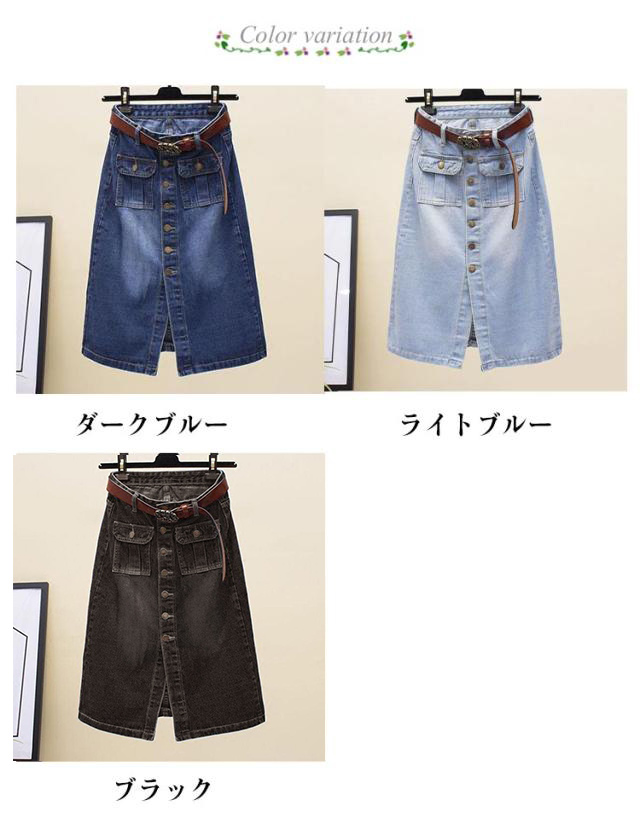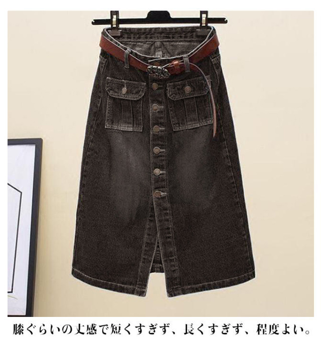 ハイウエスト デニムスカート フロントボタン aライン スカート スリット 前開き タイト 膝丈 スカート 大きサイズ ミディアムスカート タイトスカート 春 夏 秋 ポケット付き 通勤 おしゃれ 可愛い