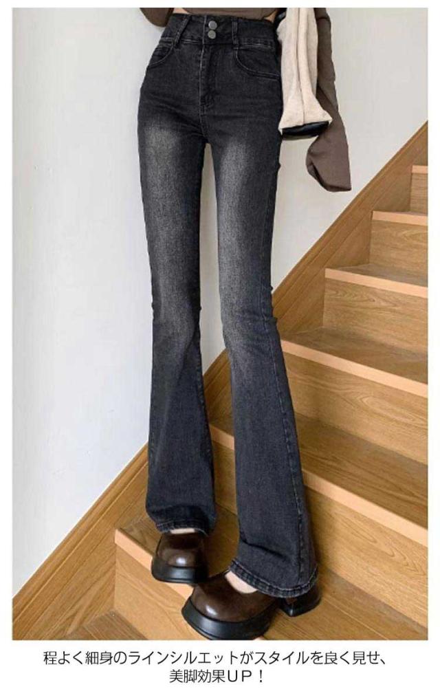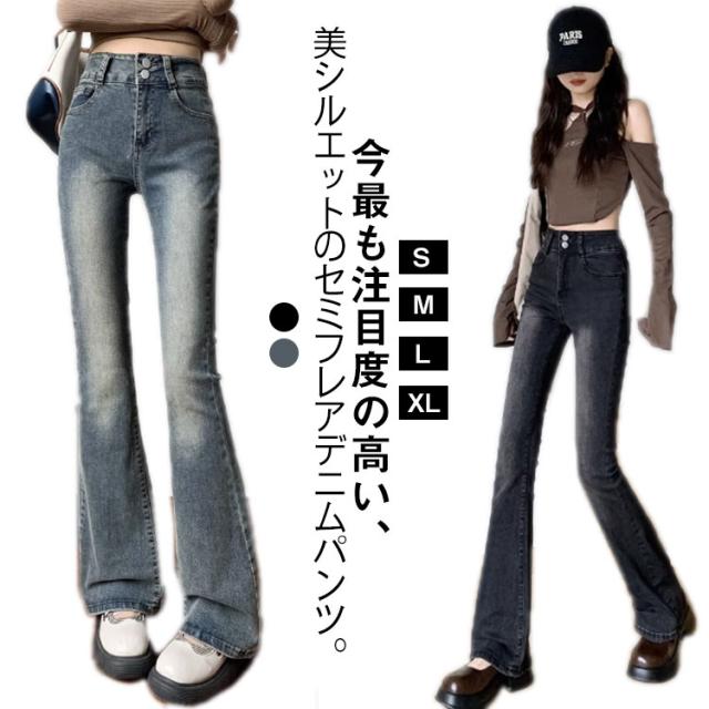 フレアパンツ デニムパンツ レディース ズボン フルレングス ジーンズ 脚長効果 ハイウエスト ブーツカット 大きいサイズ オールシーズン きれいめ 着痩せ 美脚 大人 きれいめ カジュアル