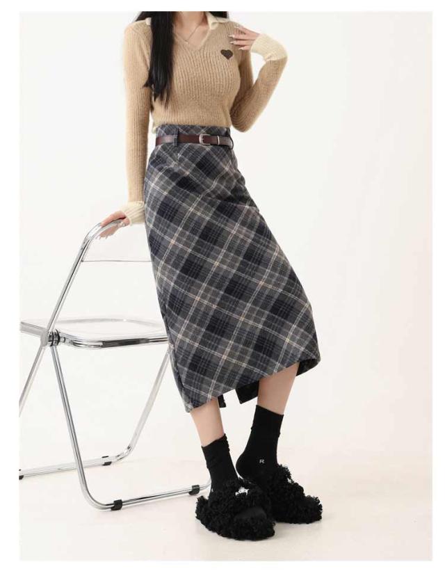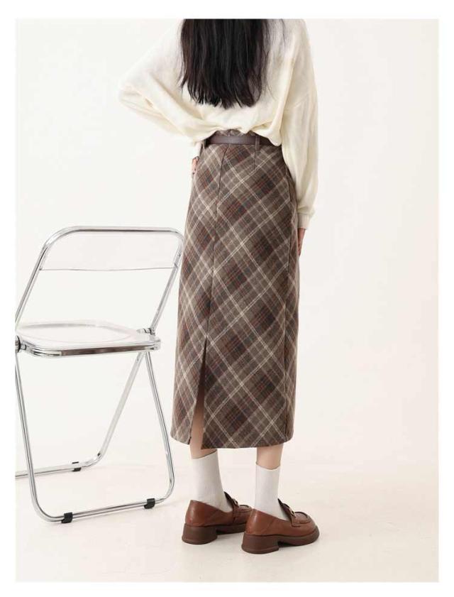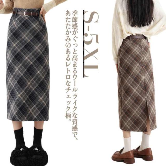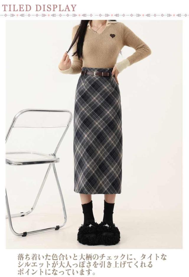 チェック タイト スカート チェック柄 ベルト付き ペンシルチェックスカート ボトムス ロング丈 バックゴム スリット 大きいサイズ カジュアル きれいめ 大人可愛い 大人カジュアル 秋冬