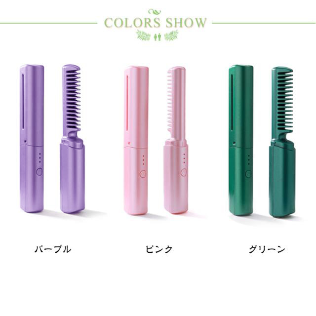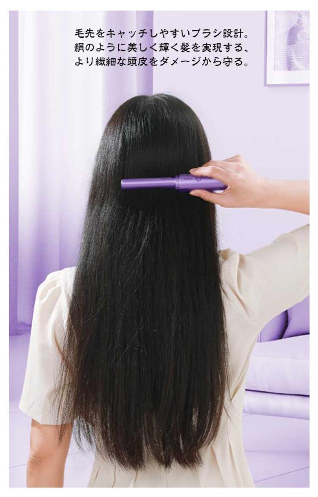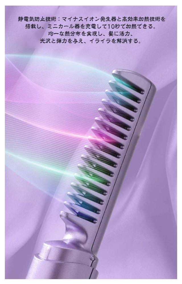 コードレス ヘアブラシアイロン ミニ USB充電式 ブラシ型 ヘアアイロン ストレート ヒート ブラシ 小型 コンパクト 持ち運び便利 カール コーム 旅行 車中泊 アウトドア ストレートブラシ ストレート&カール両用 ヒートブラシ 3段階調整