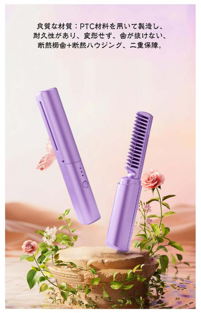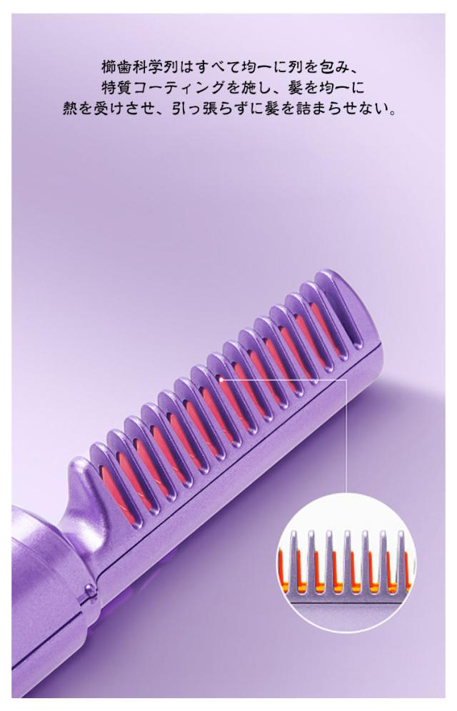 | 【コードレス】【ヘアアイロン】【2WAY】【充電式】 カールヘアとストレートヘアのどちらも楽しみたいという方にはこちらのヘアアイロンがおすすめです。 毛先をキャッチしやすいブラシ設計。絹のように美しく輝く髪を実現する、より繊細な頭皮をダメージから守る。 特製ブラシによって頭皮の血行がよくなり、髪に輝き、柔らかさ、そして弾力性を与える効果があります。 良質な材質:PTC材料を用いて製造し、耐久性があり、変形せず、歯が抜けない、断熱櫛歯+断熱ハウジング、二重保障。 3段階の温度調節があり、リンスセラミックコーティングが含まれており、使用中に髪質を傷つけることはありません。 櫛歯科学列はすべて均一に列を包み、特質コーティングを施し、髪を均一に熱を受けさせ、引っ張らずに髪を詰まらせない。 静電気防止技術:マイナスイオン発生器と高効率加熱技術を搭載し、ミニカール器を充電して10秒で加熱できる。均一な熱分布を実現し、髪に活力、光沢と弾力を与え、イライラを解消する。 大容量バッテリ4000mAh、約30分間の長時間航続時間。充電の不安を捨てる。日常のニーズに応える。 すべての髪質に適しています:柔らかくて、まばらで、濃密で、縮れて、甚だしきに至ってはひげ!ストレートブラシで髪を梳くだけで、イライラやカールを減らすことができます。 ファッションな見た目も贈り物に適しますので、母の日にお母さんに、感謝したい方に、出かけの多い友達に、自分にも最適なプレゼントです。 | |