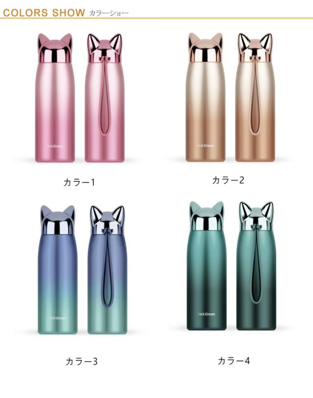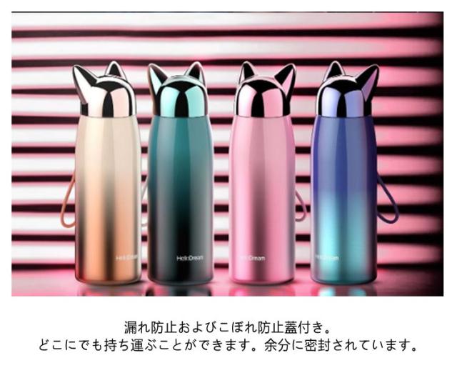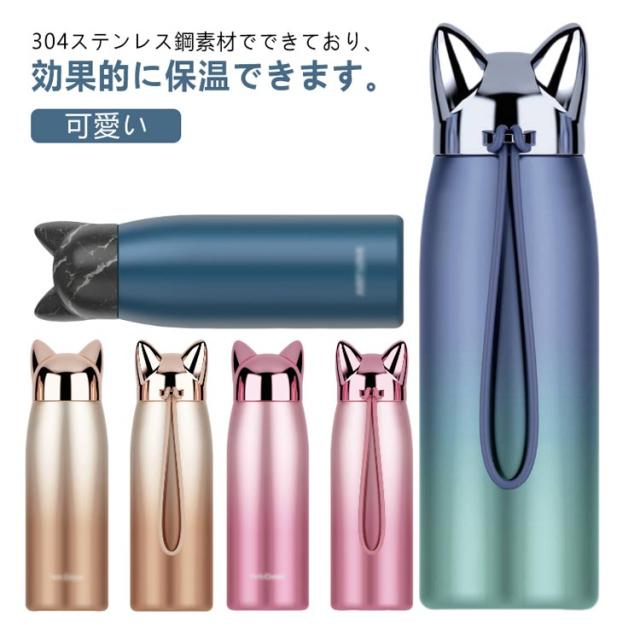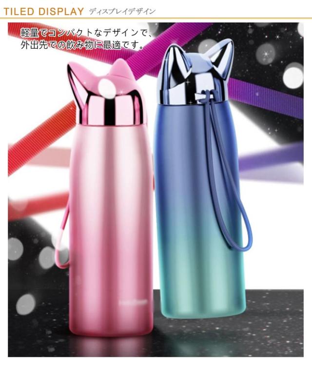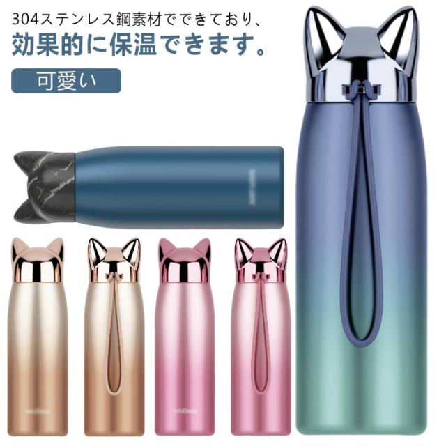 水筒 ステンレス コップ キッズ 320ml ステンレスボトル 猫耳 グラデーション マグボトル 魔法瓶 保温 保冷 真空断熱 ステンレス製 直飲み 子供 可愛い 大人 お洒落 ねこ耳 誕生日 記念日 入学祝い 卒園 卒業
