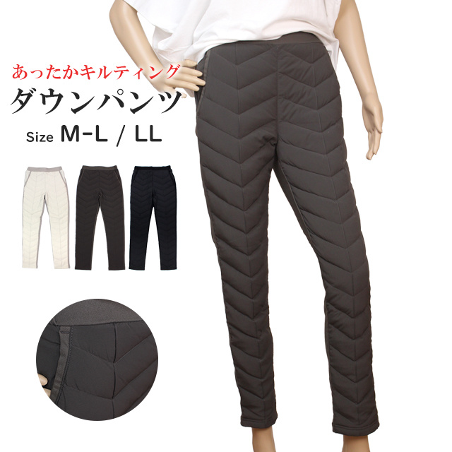 ダウンパンツ レディース テーパード 女性 婦人 あったか ボトム ウエストゴム ストレッチ タイト スリムパンツ 登山 防寒 M L LL