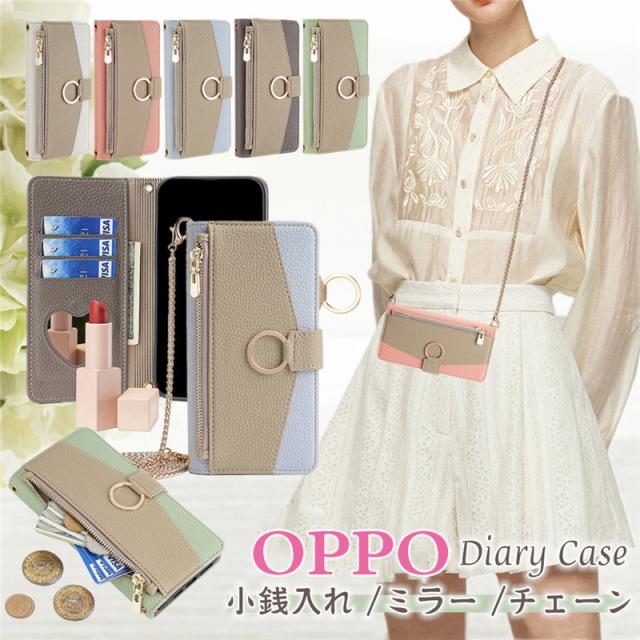 ミラー付き OPPO Reno13 A A3 Reno11 A Reno10 Pro A79 5G Reno9 A Reno7 Aスマホケース手帳型 チェーン型 ショルダー ストラップ OPPO A55s 5G Reno5A A54 携帯ケース ショルダー オッポ レノ5 A 手帳型ケース スマホショルダー コインケース くすみカラー