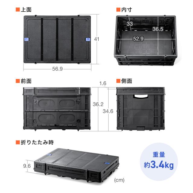 ●大容量65Lの折りたたみコンテナです。●横から収納物を取り出せるサイドオープン窓が両面についています。