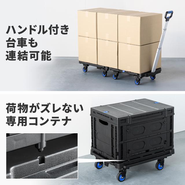 連結 平台車 キャスター格納 耐荷重137kg 連結可能 折りたたみ スタッキング 取っ手 車載 軽量 薄型 コンパクト ブラック[100-TRL001BK]