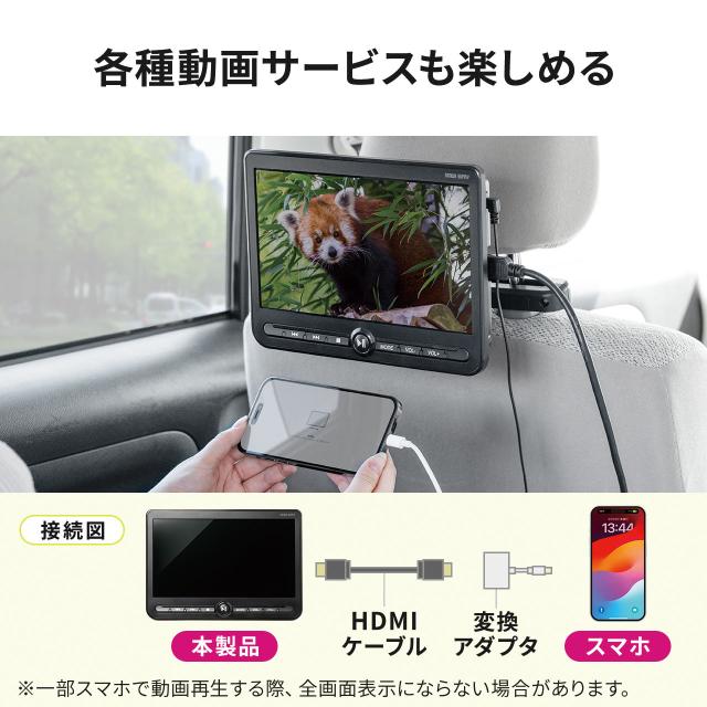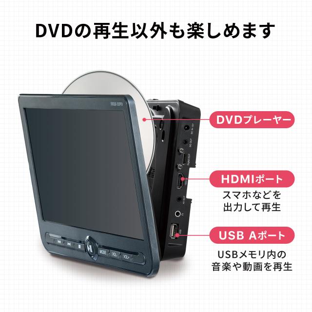 ヘッドレストモニター 後部座席 10.1インチ 車載モニター DVDプレーヤー HDMI入力 3.5mmミニプラグ USBメモリ対応[200-CAR112S]