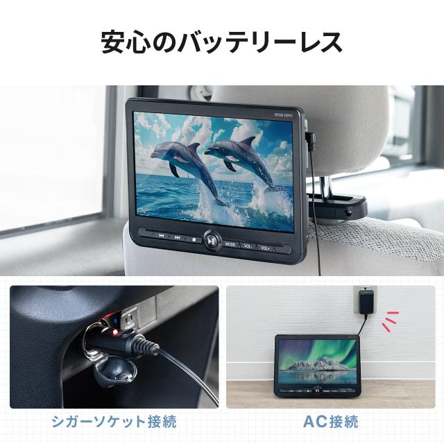 ⇒ご購入の前にご確認下さいヘッドレスト部分に装着する10.1インチ画面の車載モニター。車の後部座席でDVDや動画を楽しめる。電源はシガーソケットとACアダプタから取れるので、車以外にもコンセントのある屋内で使用できます。USBメモリに保存した動画の再生にも対応。ゲーム機やスマートフォンを接続して映像を映せるHDMI入力端子付き。【WEB限定商品】