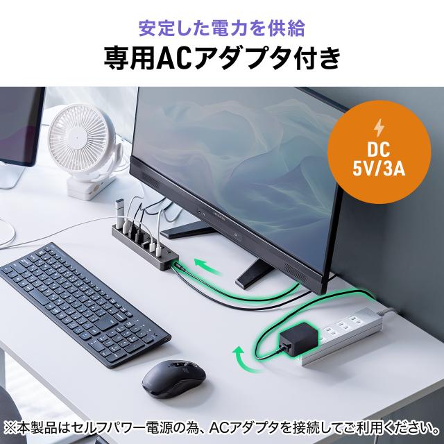 ●セルフパワー対応でACアダプタを使用すれば安定した電源供給が可能になり、ポータブルHDDなども安定して動作させることができます。