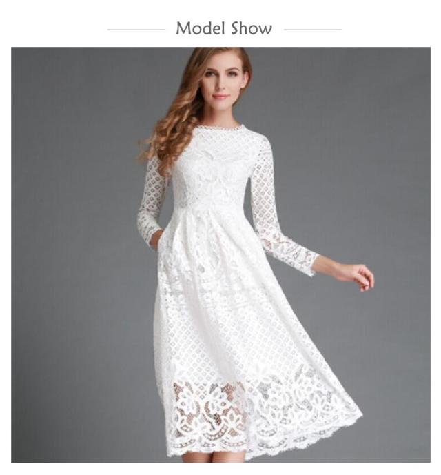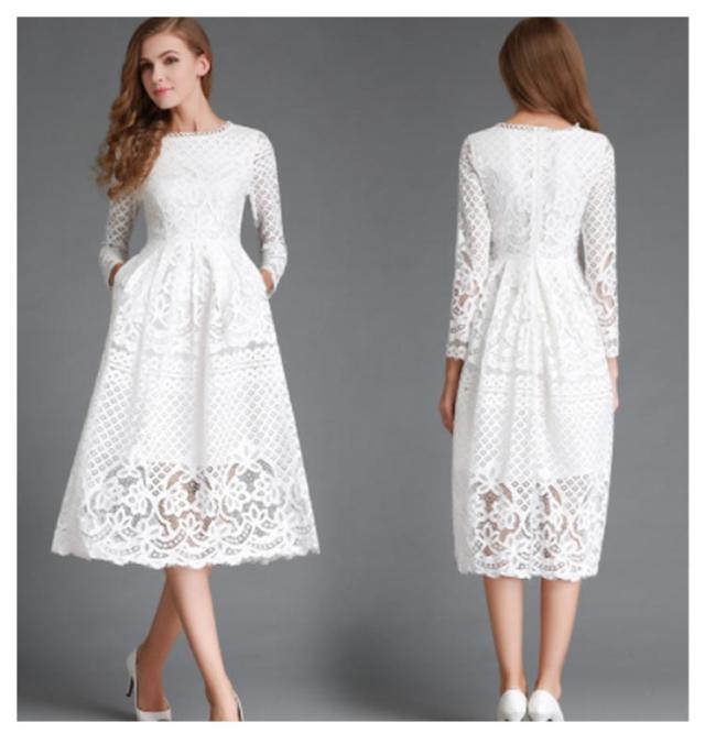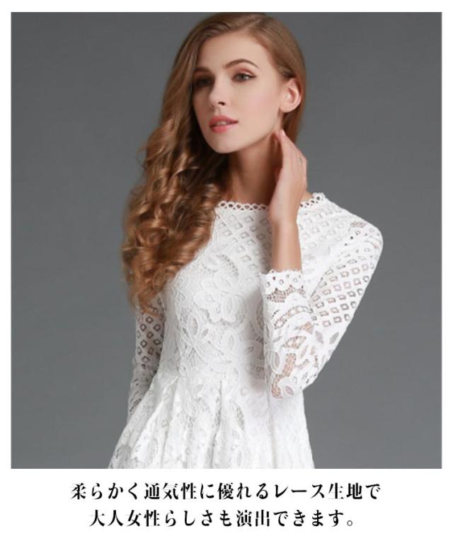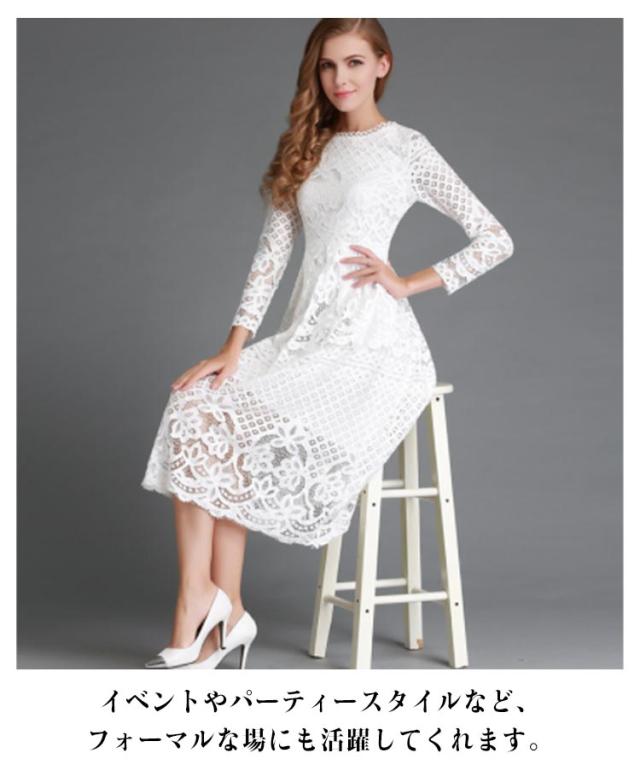 長袖 結婚式 膝丈 40代 大きいサイズ 春 ワンピース レースワンピース 入園式 二次会 謝恩会 ミモレ丈 同窓会 20代 30代 発表会 50代 パーティードレス 夏 秋 冬 白