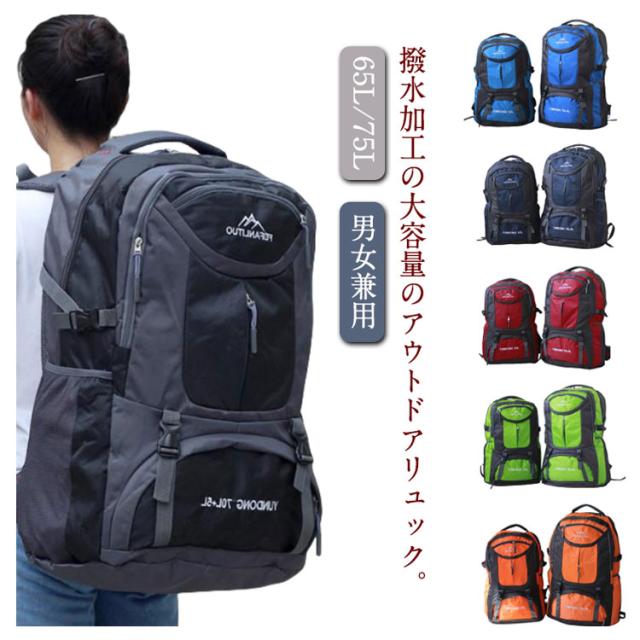 縦型 旅行 バックパック リュックサック 男女兼用 アウトドアリュック キャンプ 部活 アウトドアバッグ リュック 出張 大容量 山登り 防災リュック 65L/75L 防災用 かばん ユニセックス