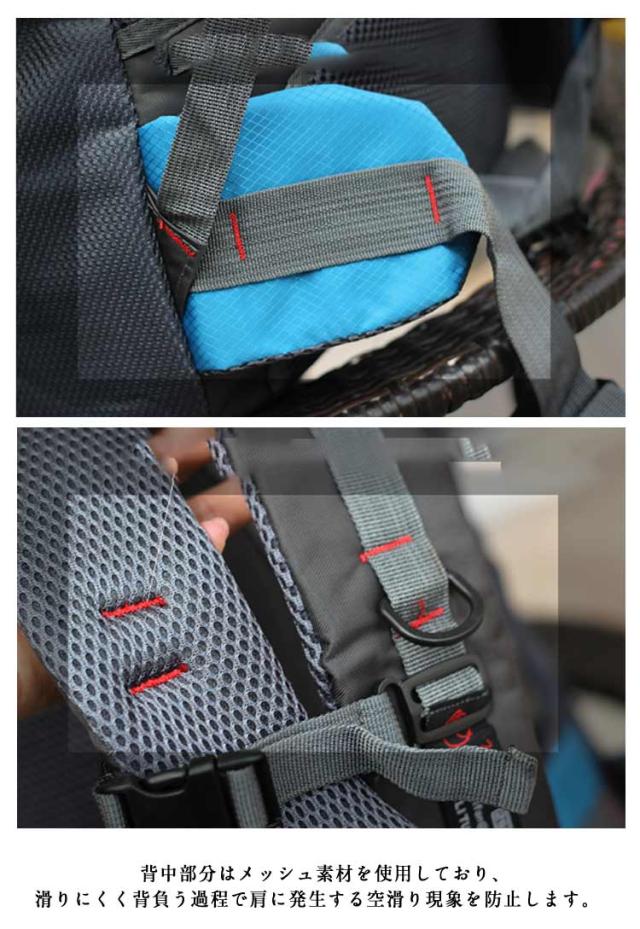 | 撥水加工の大容量のアウトドアリュック。 ポケットがたくさんあり、衣類・靴及び他のお出かけ用品を収納でき、登山や旅行に最適。 背中部分はメッシュ素材を使用しており、滑りにくく背負う過程で肩に発生する空滑り現象を防止します。 ワイドショルダー+ストレスパッド+胸(腰)固定ベルトで背負いやすくなります。 アウトドアや登山、旅行用だけでなく、通勤通学などにも使える大容量リュックです! | |
