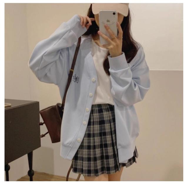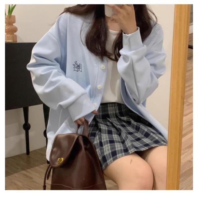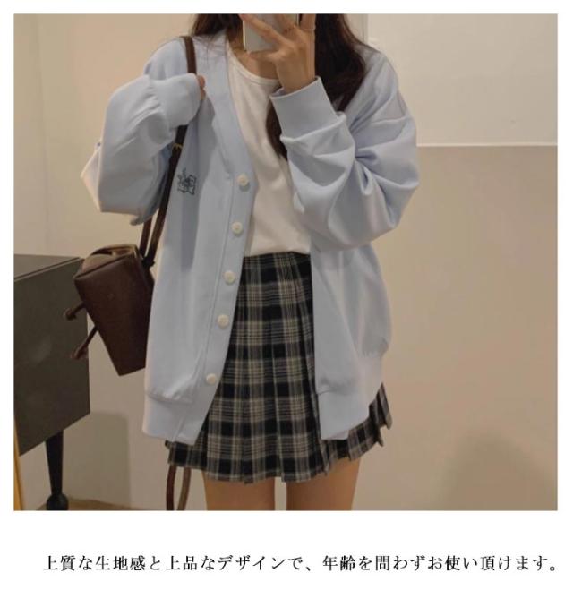 Vネック レディース カーデ 体型カバー カーディガン 学生 スウェット カーディガン 羽織り スクールカーディガン トレーナー 制服 長袖 中学生 高校生 トップス ゆったり 大きいサイズ アウター 春 夏 秋