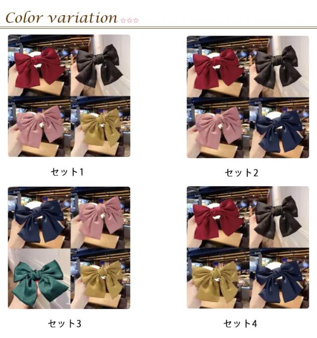 | 4個セット!超可愛い蝶結びヘアピン 少女感が溢れる蝶結び髪飾り、シンプルでエレガントなデザイン、目立ちの大きめ蝶結び、かわいいあなたにぴったりと思います。 合金スプリングクリップは千回以上の開閉テストを経て、高い耐久性を持つ、髪にしっかり固定できます。 普通のヘアピンや髪飾りとして使っては十分、女性へのプレゼントにはぴったりと思います。 | |