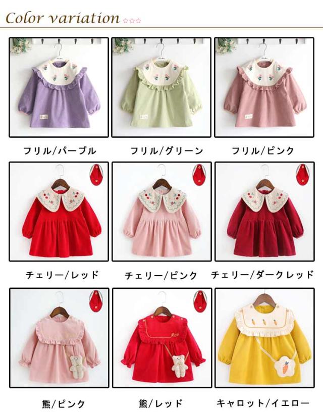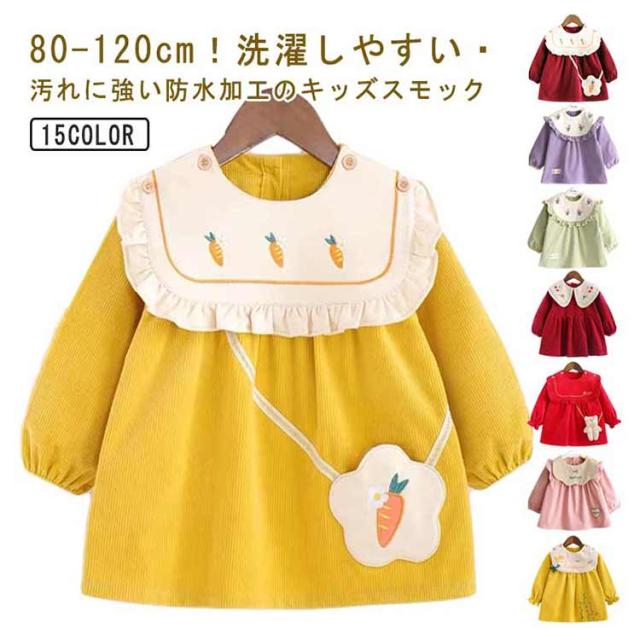 | 80-120cm!洗濯しやすい・汚れに強い防水加工のキッズスモック お洋服のような可愛いデザインの長袖スモック、女の子が大好きに間違いなし。 可愛いスカラップ襟に繊細な刺繍が施され、まるでおしゃれなブラウス。 外出時恥ずかしくないおしゃれにスモックを着用できます。 長袖タイプなので、お洋服はいつでも清潔にいられる。 胸部分は防水加工で、お食事など時もお洋服を汚せず安心。 すっぽり被るだけで可愛く汚れ防止◎ お家はもちろん、幼稚園や保育園でも大活躍に間違いなしです。 | |