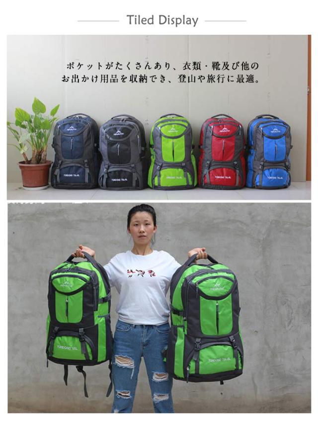 | 撥水加工の大容量のアウトドアリュック。 ポケットがたくさんあり、衣類・靴及び他のお出かけ用品を収納でき、登山や旅行に最適。 背中部分はメッシュ素材を使用しており、滑りにくく背負う過程で肩に発生する空滑り現象を防止します。 ワイドショルダー+ストレスパッド+胸(腰)固定ベルトで背負いやすくなります。 アウトドアや登山、旅行用だけでなく、通勤通学などにも使える大容量リュックです! | |