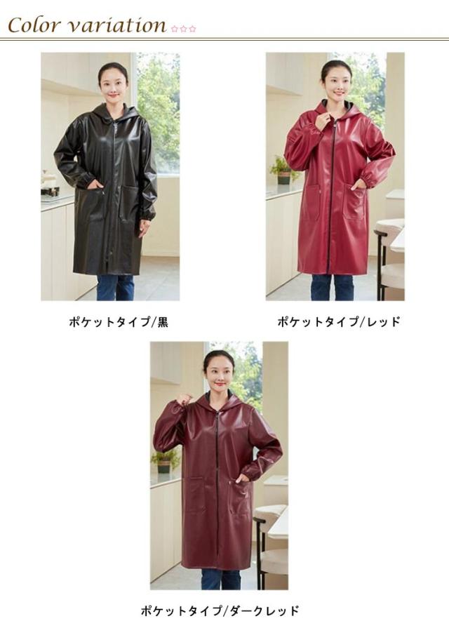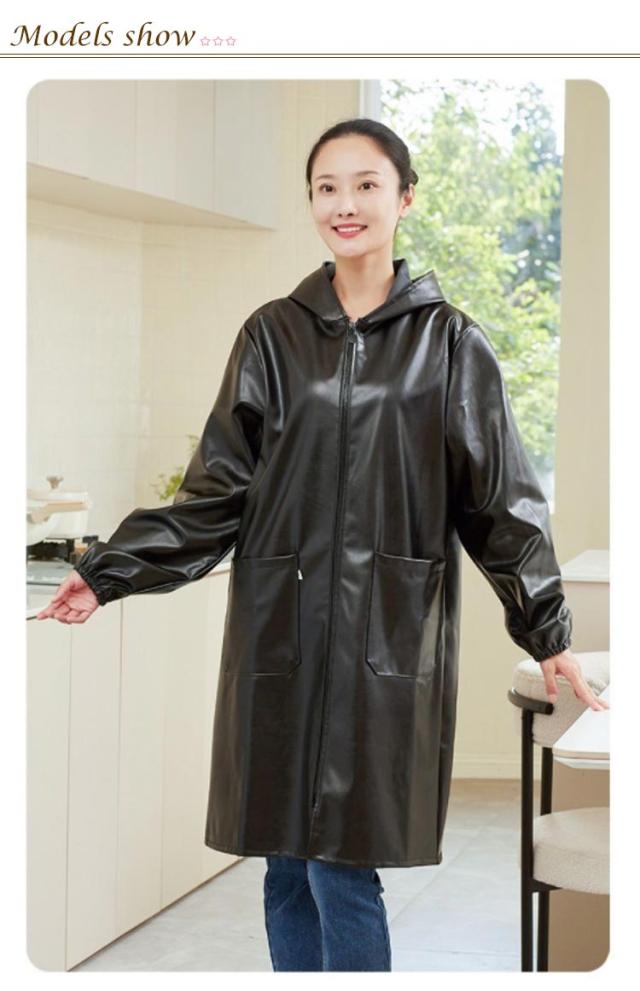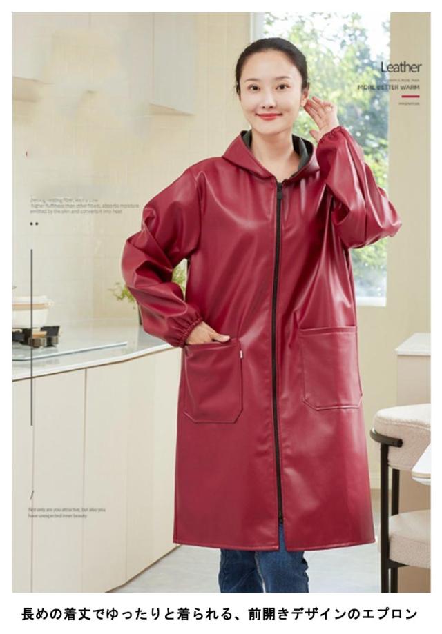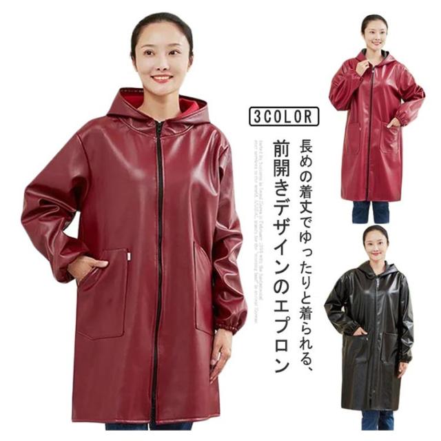 家事 水仕事 かっぽう着 割烹着 レザー メンズ レディース フード付き ジップアップ エプロン 袖付き 作業服 ロング丈 キッチン 保育士 料理教室 大きいサイズ ポケット付き BBQ シンプル 長袖 ジップアップ 大きめ ゆったり ガーデニング 料理 敬老の日 便利グッズ