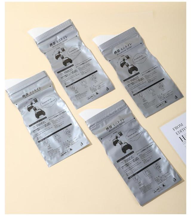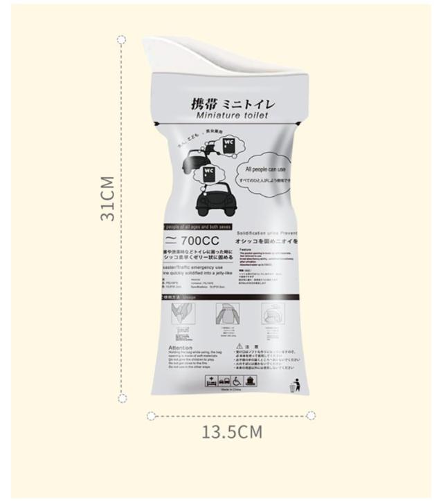 | おしっこを固めて、においを消す!700mlたっぷり吸収!携帯ミニトイレ10枚セット 【緊急時に便利な携帯タイプ】:柔らかい素材を採用し、吸水シートタイプで、汚物袋も透けないので快適に衛生的に利用できます。 【700mlの吸収力・安全安心】:吸水性抜群!一般的な成人の排尿量は200~400mIですので最大700mlを吸水してくれる本商品は安心設計です。 【男女問わず子どもOK】:携帯ミニトイレは開口部が大きく開くから、コンパクトで使いやすく男女問わず誰でもご使用になれます。 【コンパクトで持ち運びに便利】:片手で使用可能。ワンタッチで簡単に使用できま・コンパクトで便利!余ったスペースに収納できます。 【消臭力、抗菌に優れて安心】:ポリエチレンと吸水ポリマーを使用する赤ちゃん用のおむつのような吸収シートを採用し、素早くゲル状に排泄物を固めて匂いも抑えられて、消臭力、抗菌に優れて、安心できます。 【密閉型デザイン】携帯ミニトイレをご使用後、袋のジッパーをしっかり閉める。すぐ捨てることができなくても臭わず快適!菌も漏らさず衛生的です。 【サクッと!済ませる】:車での渋滞時やレジャーにも欠かせない簡易トイレ介護や災害での断水、トイレの故障などの際にも。乗り物酔いなど旅行やビジネスの移動中にあれば便利。手軽に持ち運びができて安心してお出かけできます。 | |