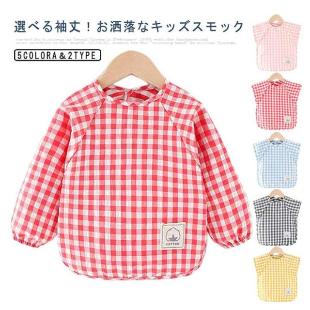 | 選べる袖丈!お洒落なキッズスモック すっぽり被るだけで可愛く汚れ防止◎ お砂場遊び、おゆうぎ、お料理のお手伝い、お絵かきなどいろんなシーンに重宝します。 綿混生地なので丈夫で長持ち、どんどん洗濯。通気性にも優れる。 薄目のチェック生地ですが、軽くて丈夫です。 お洋服のような可愛いデザイン、子供が大好きに間違いなし。 お家はもちろん、幼稚園や保育園でも大活躍に間違いなしです。 | |